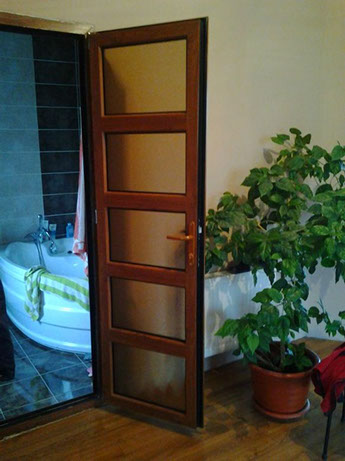 - металлопластиковые двери не подвержены деформациям от воздействия влаги, поэтому являются наилучшим вариантом для ванных комнат, саун и т.п.